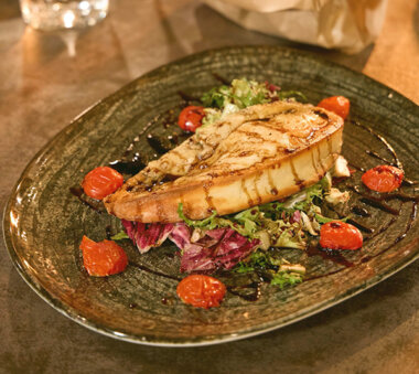 Spicchio di cacio alla griglia, olio evo, vincotto di uva/fichi e pepe nero